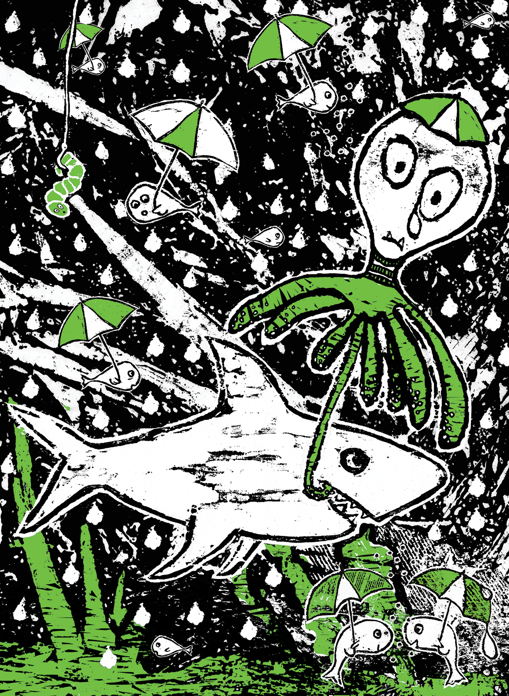 In 2009 and 2010, Uitgeverij Querido published 2 poetry collections, assembled by Ted van Lieshout: ‘Ik wil een naam van chocolade’ (I want a name of chocolate) and ‘Wie heeft hier met verf lopen smijten?’ (Who has been throwing paint around?). Each poem was brightened up by a different illustrator…